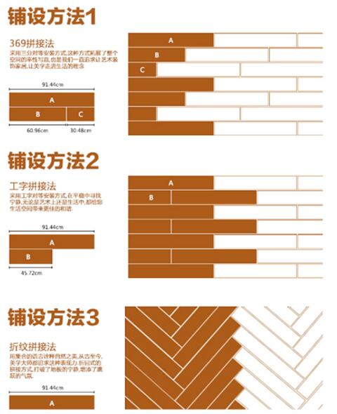 3.人字鋪設(shè)法或者拆紋拼接法 (安裝費用會比以上高)